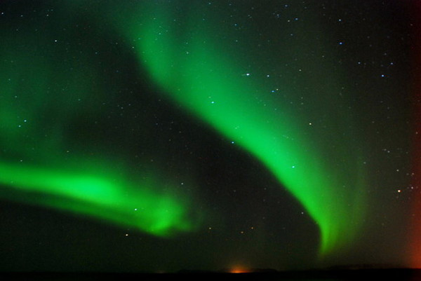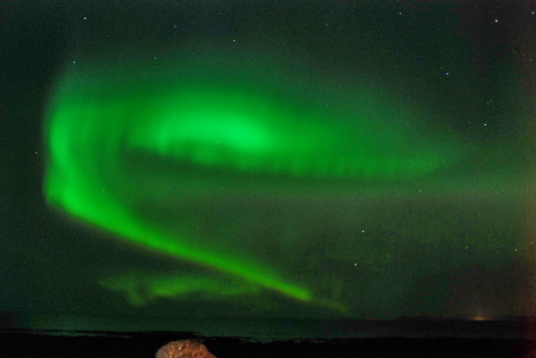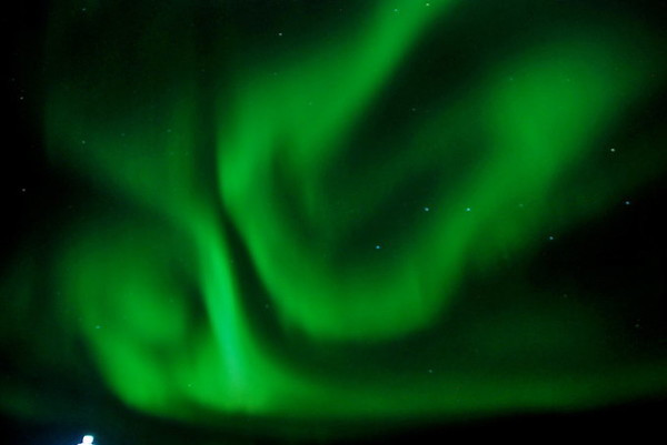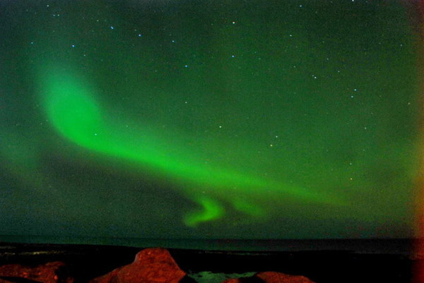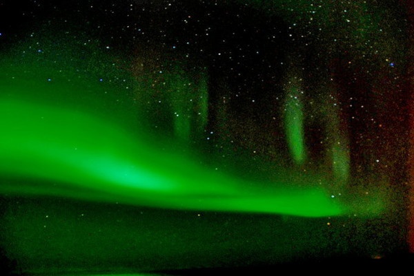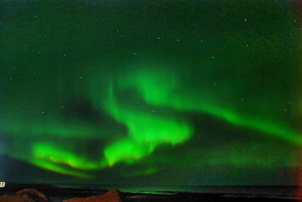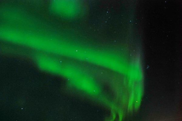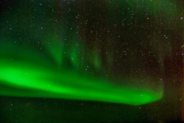 绿色当然不是极光的本色,那是长时间曝光的效果。