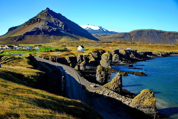 世界著名旅游胜地斯奈山半岛( 冰岛语:Snæfellsnes),位于冰岛西部,北临布雷 扎湾和华姆斯峡湾,南濒法赫萨湾,长约90公里。
