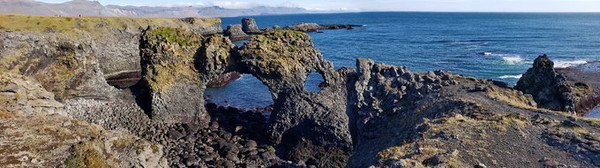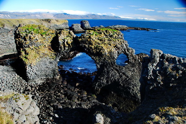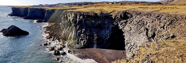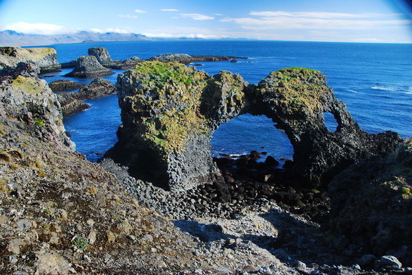 一路上会发现一个洞穴,顶部己经被海水击穿,向下可以看到大海波涛,很多海鸟搏击着海浪:这里有点像地中海。再往南走就是格特兰图(Gatklettur)石拱,18, 19世纪它一直是铜版蚀刻者们热爱的地方,他们通常会到此一游。