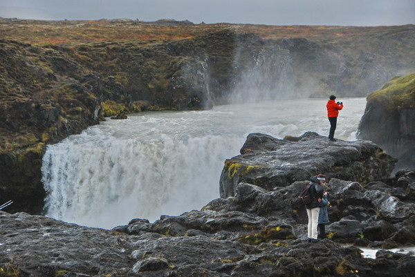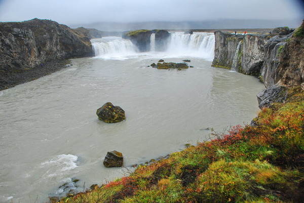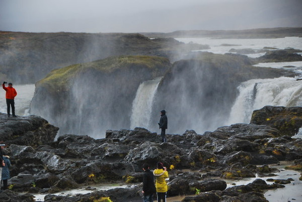 Goðafoss瀑布在冰岛著名的米湖附近,得名于一个传说,在公元999或者1000年的时候,冰岛皈依基督教,维京人信仰的神像被投入了这个瀑布。Goðafoss也在一号环线公路旁,很容易看到。