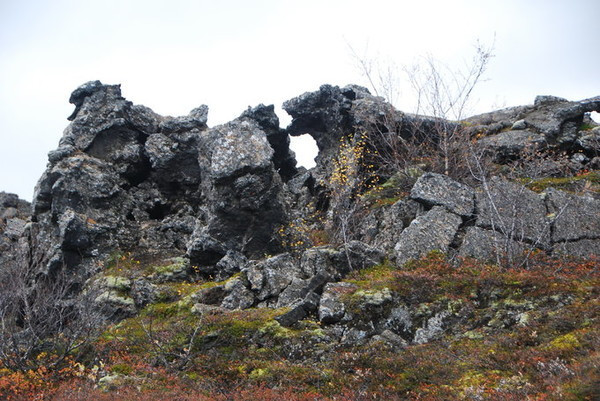 7, 黑暗城堡由于岩浆流动而形成的迷宫一样的一片风光,最著名的是熔岩拱门Kirkja,因为大量岩浆流过时,表面已经凝固,但是里面的岩浆仍然在流动,当岩浆流走了以后就形成了像拱门一样的奇特地貌。