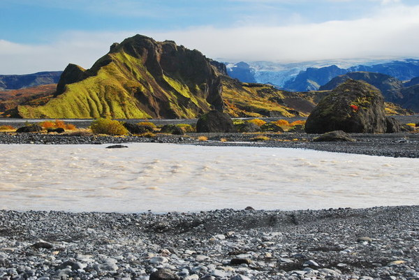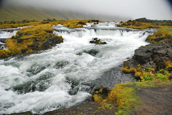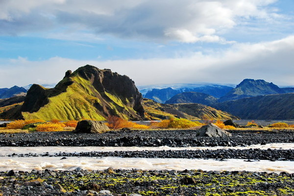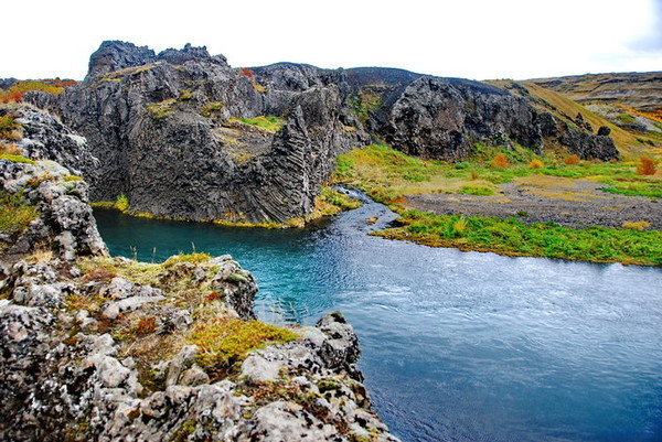 河流流经的熔岩原诞生自海克拉火山 (Hekla),该火山是冰岛最为活跃、最难预测的暴烈火山,已经喷发了20余次,更被冠以“地狱之门 ”的昭彰“恶名”。