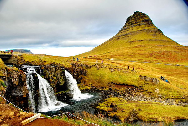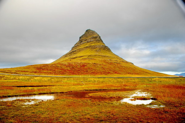 1,教会山(草帽山)Stykkishólmur以西,Grundarfjörður小镇镇口的这座山,以某个角度形似草帽闻名。山旁边还有一些小瀑布。不同角度可以拍出不同的大片,摄影师们最爱的地方。