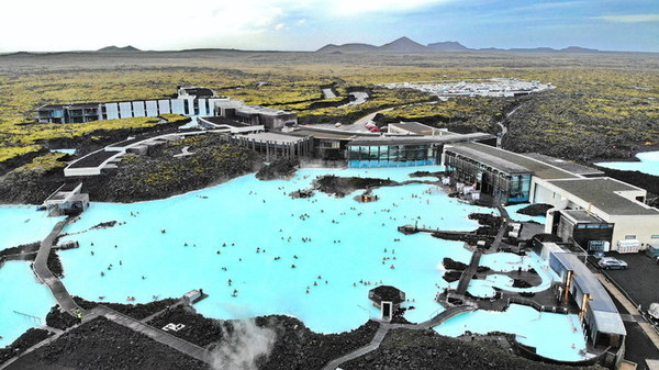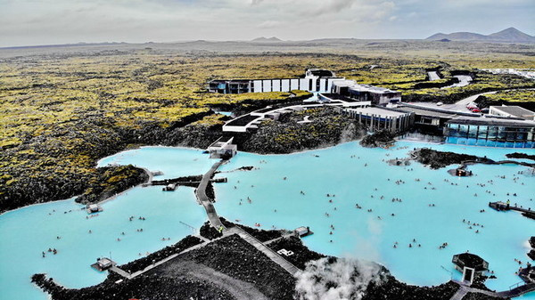 冰岛蓝湖,也称蓝潟湖,是冰岛一处著名的地热温泉。蓝湖位于冰岛西南部雷克雅内斯半岛的格林达维克,距凯夫拉维克 国际机场13公里,距首都雷克雅未克39公里。蓝湖由部分火山熔岩形成,水温约37–39 °C。湖水富含硅、硫等矿物质。在蓝湖泡温泉,可以帮助治疗一些皮肤疾病,如牛皮癣等。