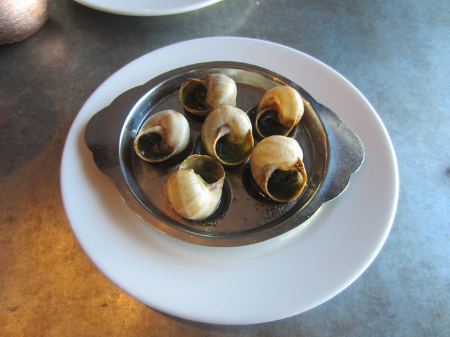 酒店的规定是上午十一点退房,但是我们送机的人下午四点来接我们,我们住的这个房间当天晚上没有客人,所以经理同意我们在房间里待到四点。中午第一次点了法国蜗牛,很小一只,吃起来就和海螺差不多,不过肉质更嫩。