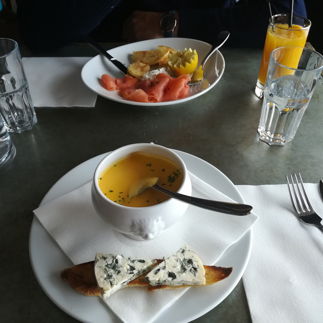 早晚餐都是包含在房费里,到达酒店的第一顿饭让我第一次吃到了著名的蓝纹奶酪,第一次吃发霉的奶酪稍微有点接受不了。