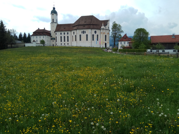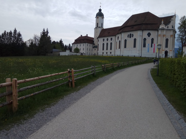 维斯教堂坐落于风景秀丽的阿尔卑斯山谷中,被联合国教科文组织列为世界遗产.我们去的这天正逢它休息日.所以只能看看外观.