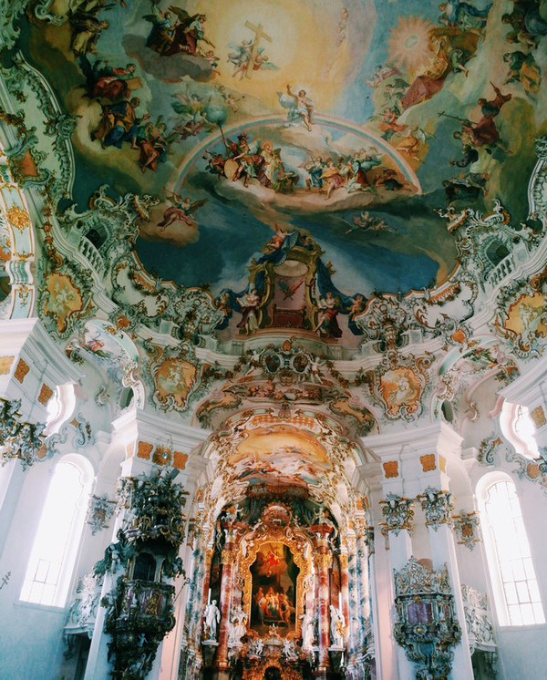 从百度搜一张维斯教堂内部照片.气魄辉煌,精雕细琢,超凡脱俗的维斯教堂的每一个细节.