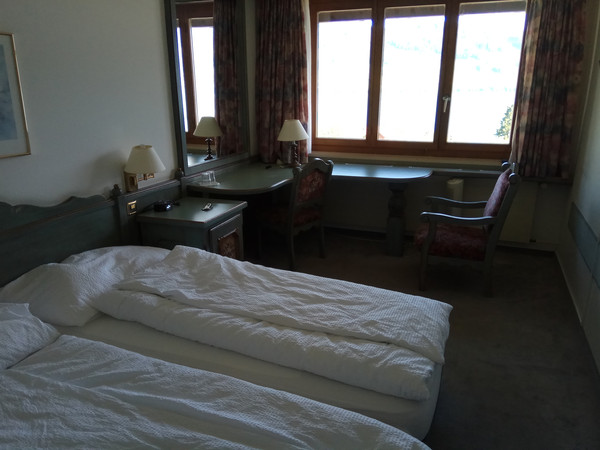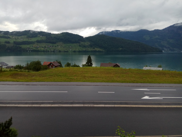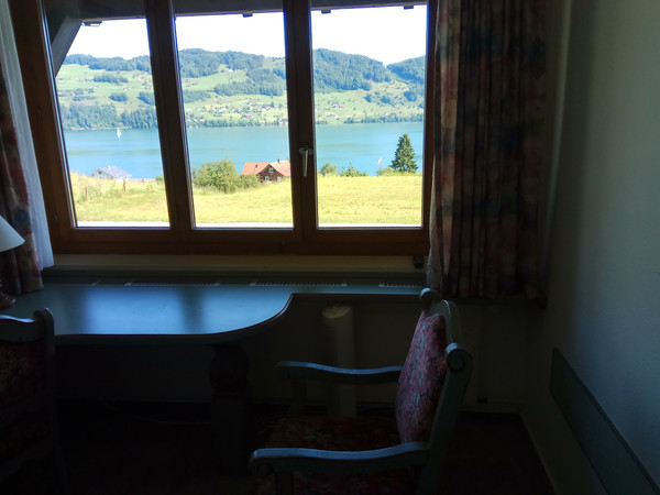 酒店是在网上订的.瑞士酒店价格之高是出了名的.同档次的市内价2000左右,在郊区只有几百元.我选择后者,600元湖景房.下公交车到门口50米,耗时30分钟.