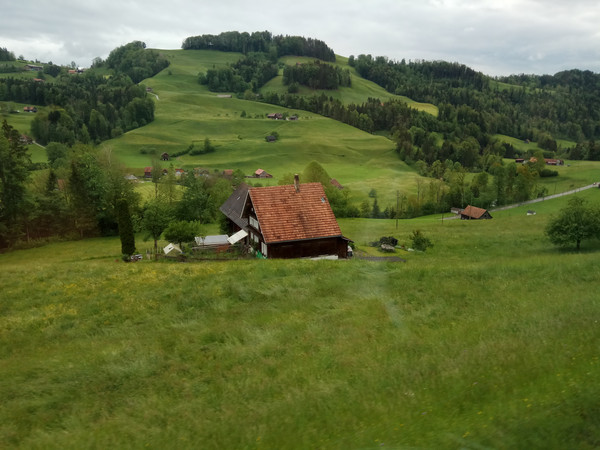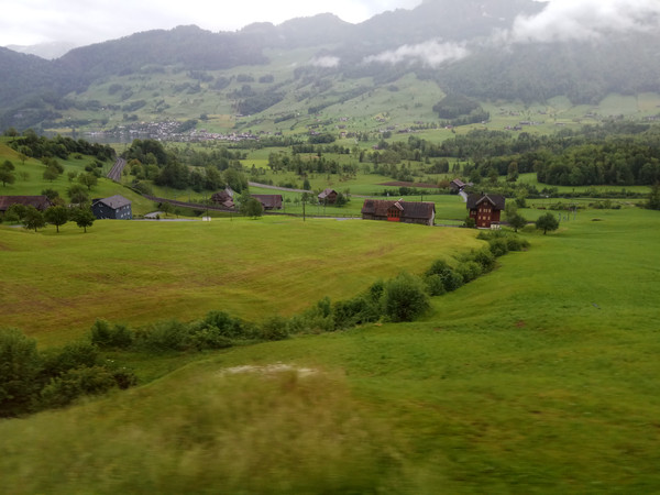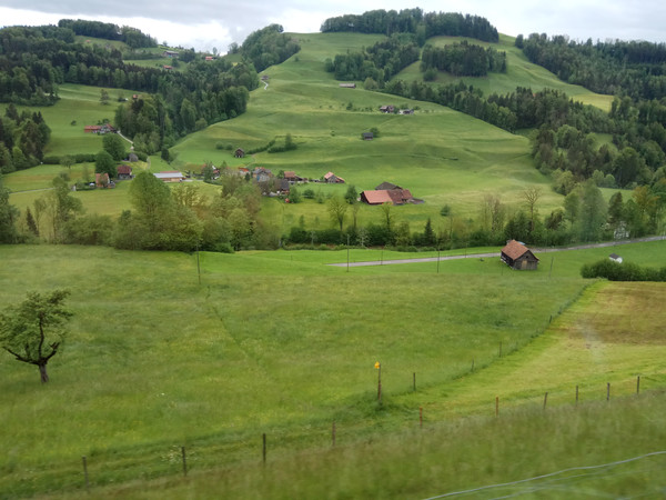进入瑞士,大面积绿毯式山地此起彼浮.童话世界画卷.