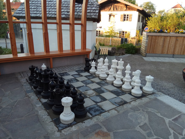 小镇广场后花园里的国际象棋,让你排兵步阵.