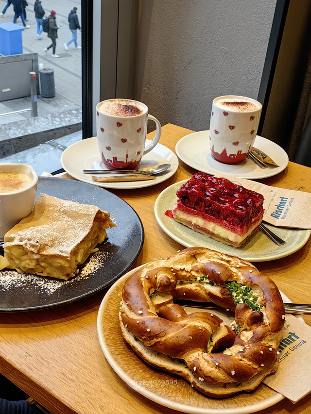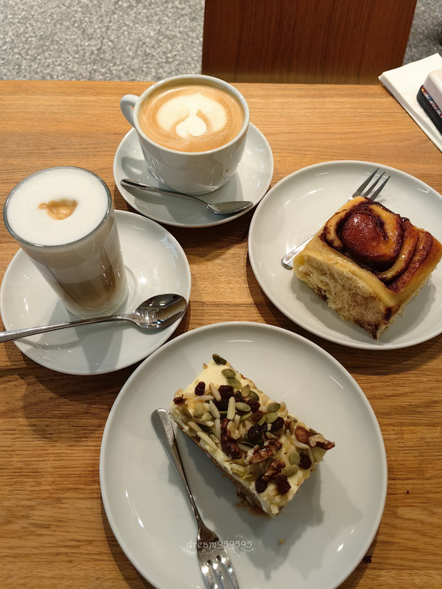 柏林网红店,各种肉桂卷是特色,点了苹果肉桂卷和胡萝卜蛋糕,都不错,但是不惊艳,咖啡一般。