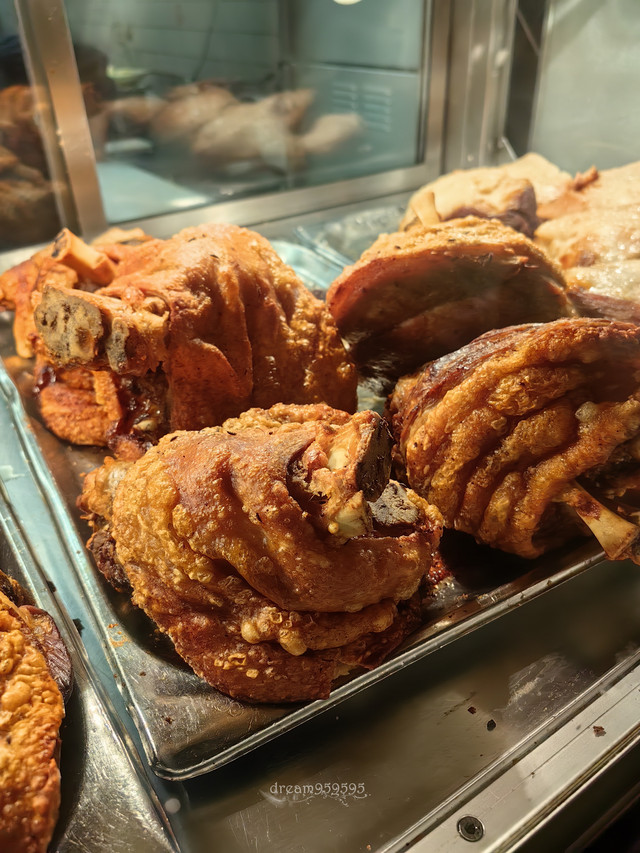 猪肘,半个都很大,但是味道不咋地,皮烤得有点咬不动,隐约有点肉夹气,酱汁也不好吃。