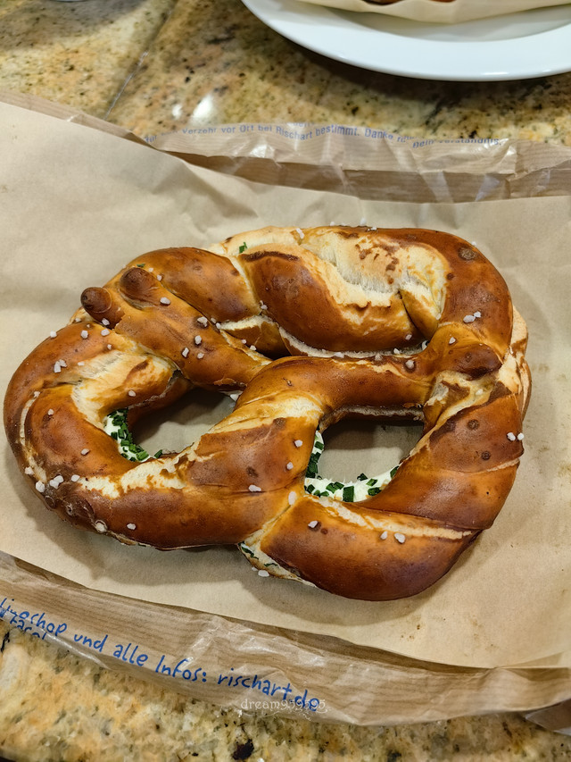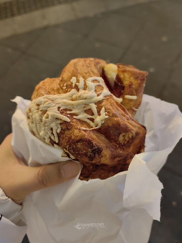 吃到了巨好吃的香葱奶酪碱水扭结,奶酪很香不腻。