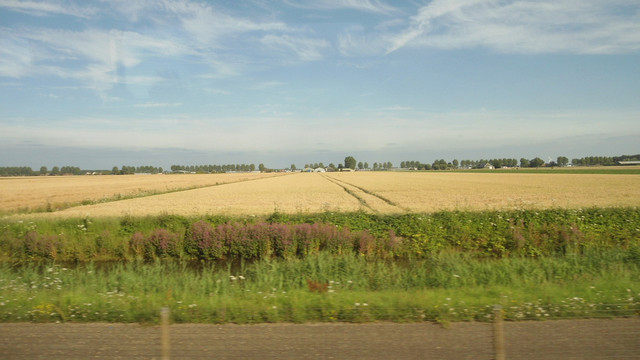 沿街看宿舍周围这些房子的外观,感觉荷兰人生活质量高,沿途还看到乡村的土地、麦田,一幅现代化农业产业的图景,和比利时相比,虽然都是大平原,比利时的荒草地就多多了。
