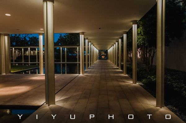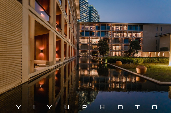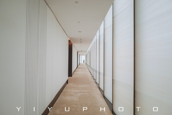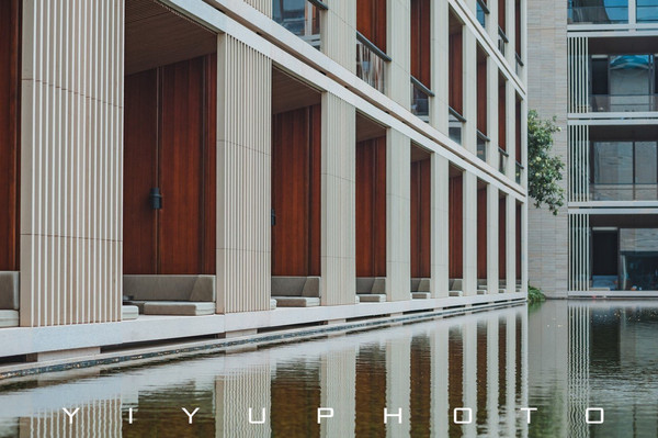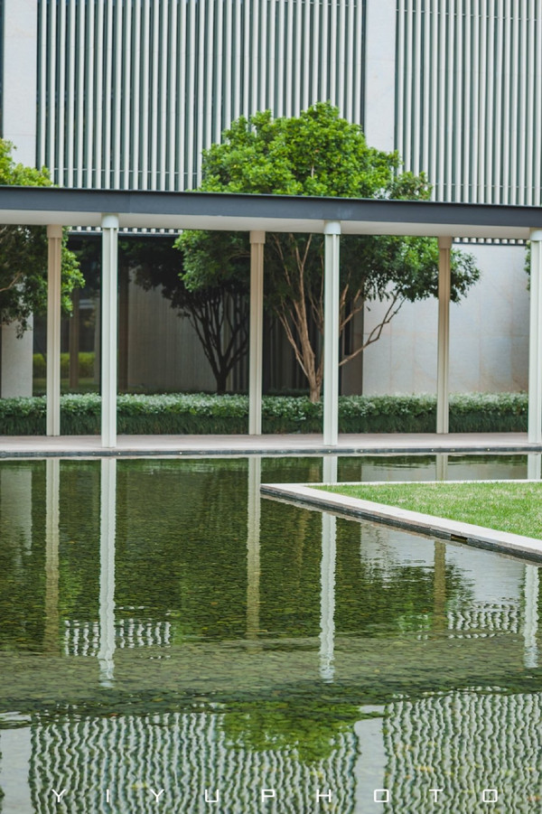 大面积的留白,对称构图的设计语言,还有中庭园林的光影和倒映着建筑的水池,每一幕都仿佛一幅凝固的画作。有着让人能神思放空的能量。