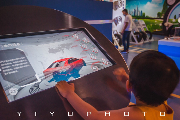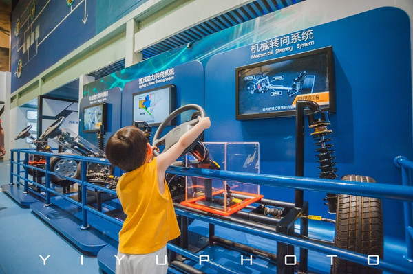 各种方向盘一下子吸引了胖胖的目光,每个都要摸一摸,这里还有孩子可以玩的汽车模拟驾驶,体会一下小司机的乐趣!