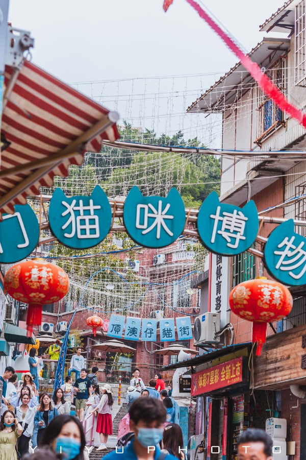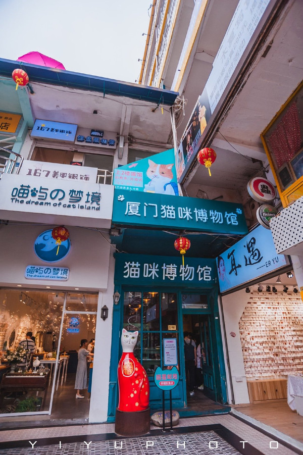 厦门 猫咪博物馆是这里“猫街”的来源,也是爱猫文化的极致体验中心,曾经猫街是老旧的顶澳仔路,现在是猫咪主题文化的街区。这里充满了许多猫的元素,商业街的墙上、广告牌还有雕塑,都是各品种猫的卡通形象,五颜六色姿态各异。