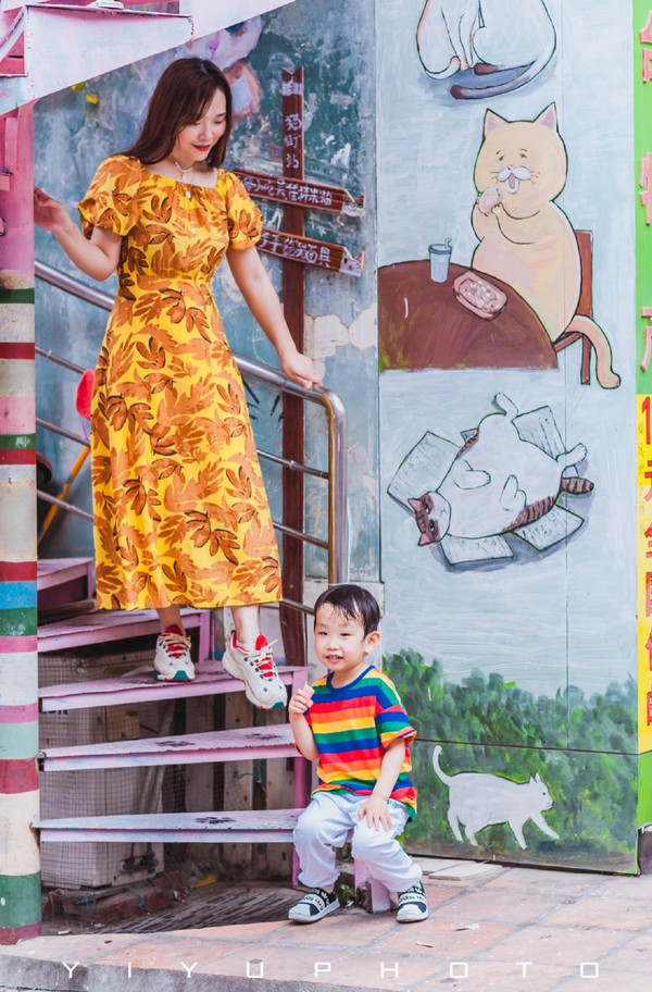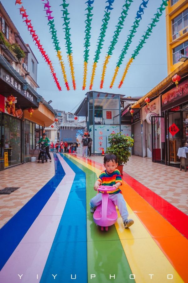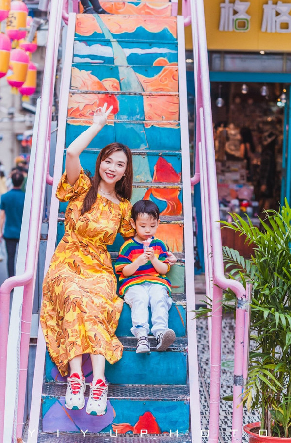在撞衫的彩虹街道骑了别人的小车车,胖胖顿时就雀跃了,也有了主动和妈妈合照的心情!(当然还要买冰淇淋犒劳一下的)