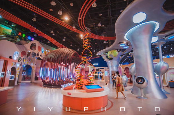 整体有主题馆、儿童馆、航天馆(限时特展)三个展馆,面积超大!主题馆馆内包括包括和谐发展馆、海洋摇篮馆、探索发现馆,创造文明馆。最顶层的儿童馆建议最后再去,单单每个展厅就能玩几个小时。可以中途出来吃饭,但我们真的嗨玩一整天没出来!全靠零食和烤肠冰淇淋充饥,中途完全无法将娃带走,闭馆铃声响起才恋恋不舍的离开,上车秒睡!