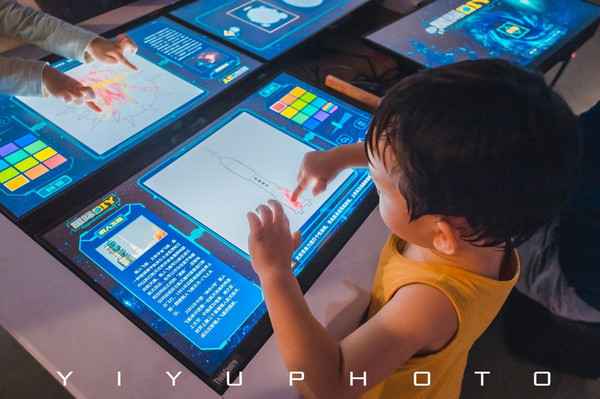 各种机器人也都很吸引眼球,虚拟水流墙可以让孩子们一起玩耍共同协作让水流下来~