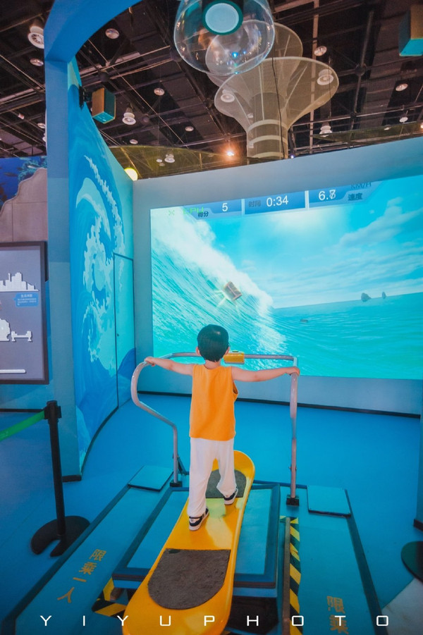 主要展出生命与海洋,红树林全景展示视觉效果超赞!鱼眼中的世界也很有意思,冲浪游戏和躲避鲨鱼的游戏都很适合小宝宝,最赞的深海电梯超酷炫!
