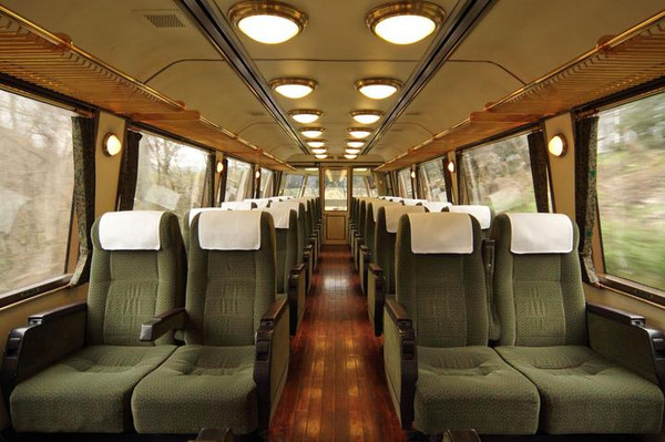 由布院之森有着森林般的翡翠绿车体,搭乘的瞬间便可感受到度假村般的氛围,洋溢着木材温暖感的车内装饰,给人以穿梭于森林间的感觉。相比普通列车,由布院之森的座椅采用抬高的设计,视野自然比普通列车要好不少。它的目的地便是以丰富的自然风光、典雅别致的文化、热情好客的风俗闻名于世的温泉度假目的地由布院。
