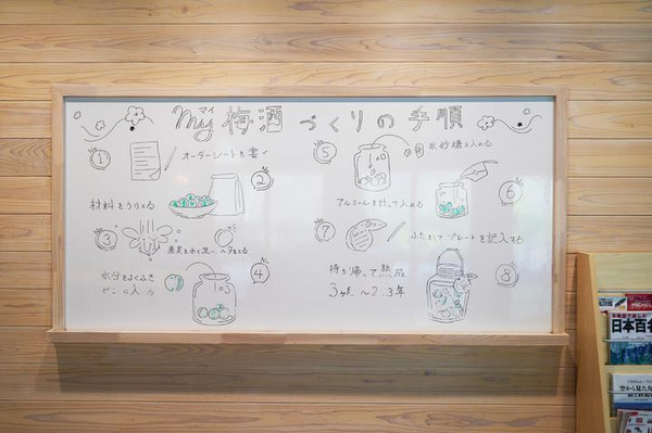 自己制作梅酒的体验课程最受欢迎,所以必须预约。刚下来的梅子青而酸,只要泡在酒和糖中,再经过时间的魔法,几个月后就会变成美妙的梅子酒。也有针对不擅长喝酒的人和孩子的商品“制作梅糖浆的体验”。