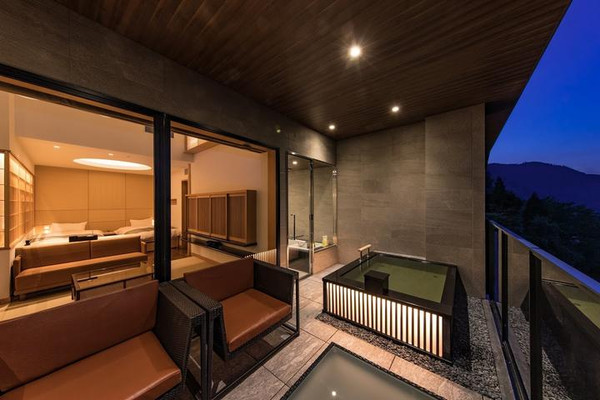 以“梅”温泉为概念的温泉旅馆“奥日田温泉UMEHIBIKIうめひびき”,位于日田市南部,响溪谷两旁耸立着壮观的岩石,整个大山地区被凛冽寒冬下绽放的梅花包围着。从外观设计、内部装潢,到菜单都以梅花点缀。在开放感十足的露天温泉大浴场,可将雄伟壮阔的响溪谷全景尽收眼底。