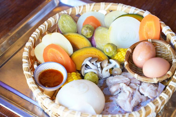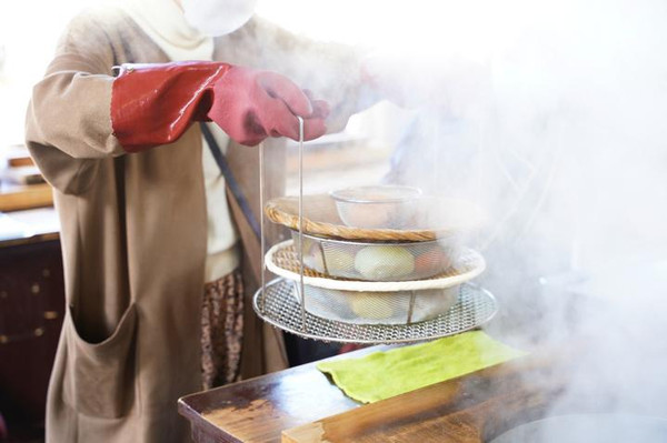 地狱蒸气工房铁轮,是当地非常受欢迎的人气乡土料理,被称为“地狱蒸”。烹饪方法很简单,更适合游客体验。将时令蔬菜和鱼贝类等放在温泉喷出的约100度蒸气上进行烹煮。食材的美味和营养被紧紧地锁住,温泉成分的效果也加入其中,使味道更加醇厚。因为不使用油,所以很健康。