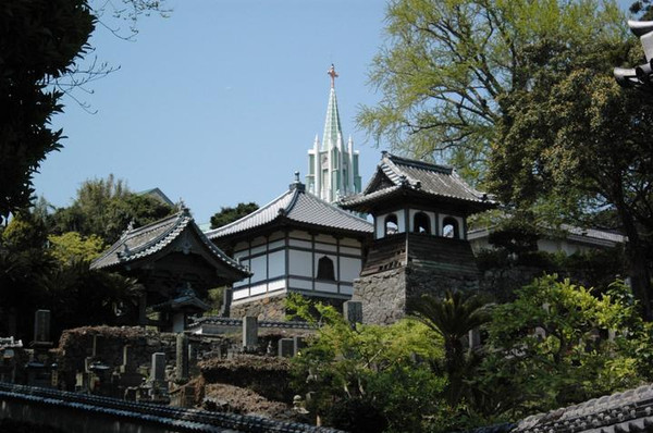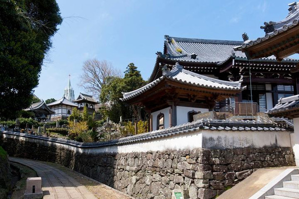 长崎有着著名的“唐四福寺”,是17世纪当地华侨的四大寺庙——兴福寺、福济寺、崇福寺、圣福寺的总称。1620年左右,中国明朝商人开始来往于长崎,当时幕府对基督教禁令非常严,住在长崎的中国人为摆脱基督教嫌疑,开始兴建寺庙。真园大师开基建造了兴福寺,也是日本国内最早的唐寺。其第二代住持墨子如定大师因修建了“眼镜桥”而闻名,其第三代住持逸然大师因被称为长崎汉画之祖而闻名。院内除了保存有日本国家指定重要文化财产的“唐人屋敷住宅门”、长崎县指定有形文化财产的“三江(江南、浙江、江西)会所之门”之外,还有被称为“日本三圣堂”之一的长崎圣堂的大成殿和杏檀门(大学门)。