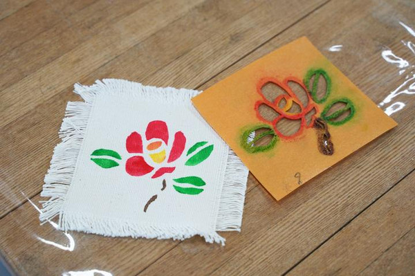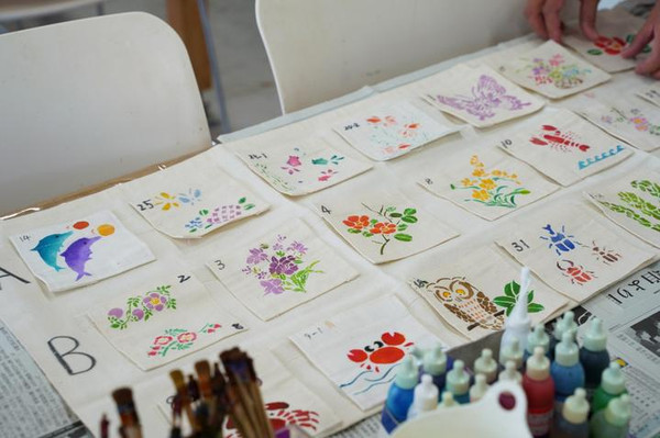 在传统工艺体验工房,有银工艺、刺绣、染色、彩色玻璃的体验项目,我们的选择是布染。据说文政年间,上野俊之丞设立了工厂,制造供给国外的“长崎更纱”。在长崎的染塾,致力于那个复原和创作活动。体验的过程相对比较容易上手,挑选了心仪的图案后,即可通过印模在布上染色。