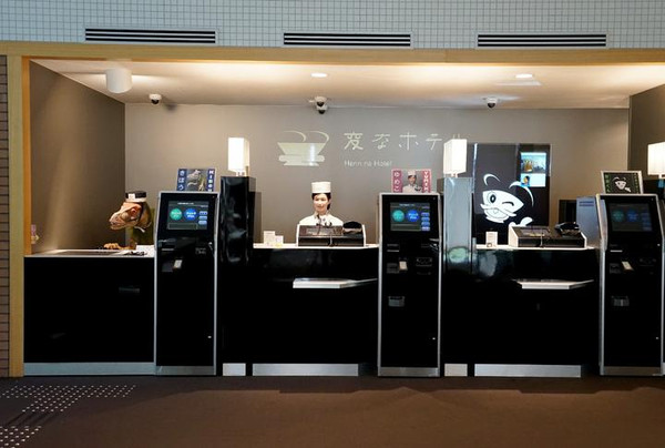 在豪斯登堡各种特色的酒店及度假村中,最吸引人的非“奇怪的Hotel” (変なホテル)莫属,这是全日本乃至全球的第一家“无人酒店”。酒店内全部采用NEC的脸部识别,信用卡结账,无人经营,工作全由会说各国语言的机器人完成。