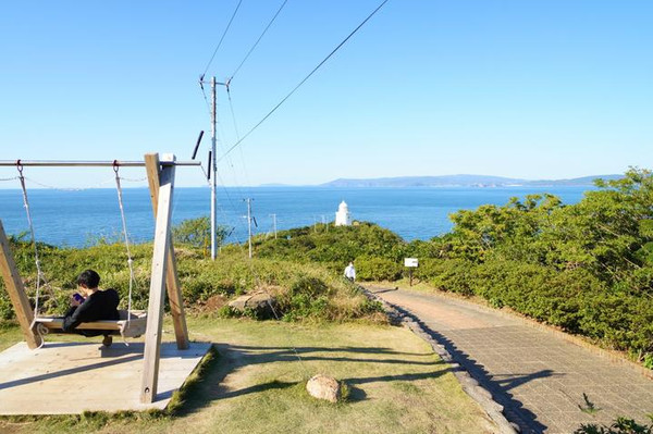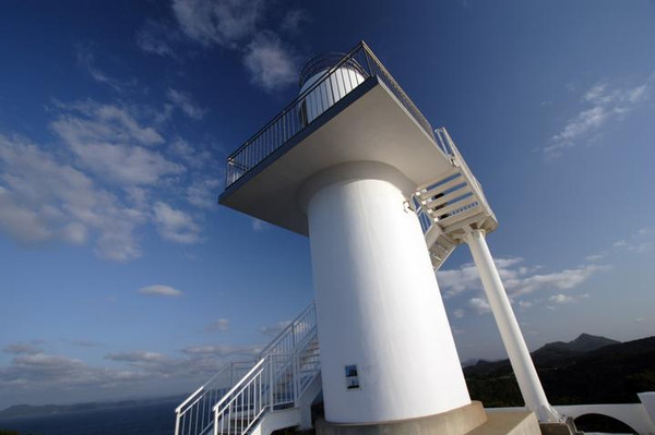 “オオバエ灯塔”在蓝天白云的映衬下,格外美丽。这个建在80米高陡峭大碆悬崖上的白色无人灯塔,本身也是一个展望台。在这个充满诗意的地方,人们可登上灯塔,360°远眺四周风景。
