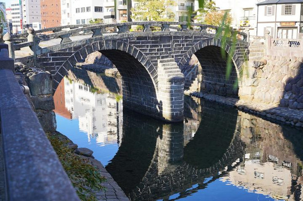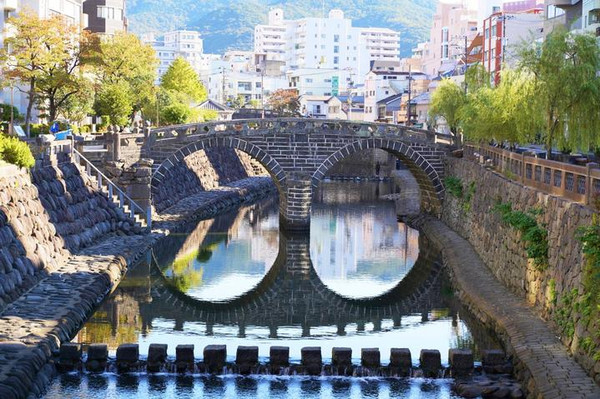 眼镜桥是日本三大名桥之一,于1960年被列入日本国土重要文化财。它位于长崎市中岛川上,由兴福寺第二代住持墨子如定大师,于1634年建造。眼镜桥是长崎市最著名的人行徒步桥。
