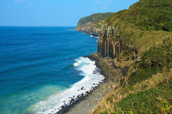 除此之外,生月岛上最为惊艳的,还是大自然的鬼斧神工。盐俵断崖的这些石柱比肩而立、造型奇特,南北长500米、高约20米,经海水不断冲刷而成,仿佛是天然的钢琴琴键,依附在悬崖的一侧。夕阳西下,等待涨潮拍打出动人的自然乐章。