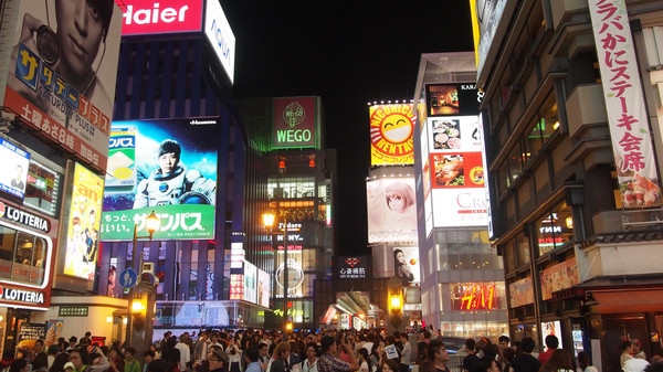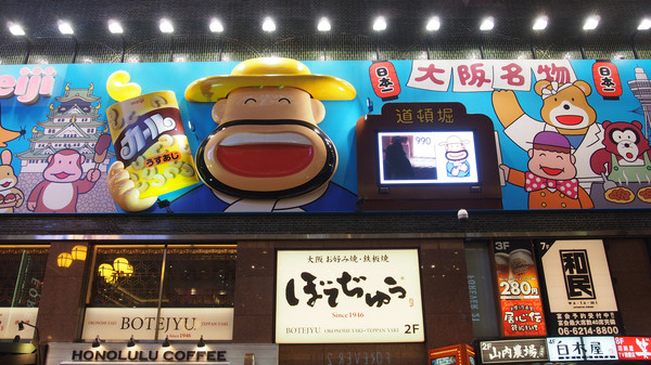 道顿堀一直是大阪最有“人气”的地方之一,也是所谓的“吃趴下”饮食文化的发源地。河边挤满了各种大大小小的饭店,巨大的广告牌吸引着前来品尝美食的人们。在道顿堀有一条幽静的后街,那是有名的“法善寺小巷”,不少大阪的名人也时常光顾这里。