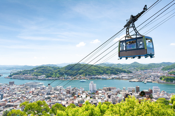 抬头望向晴空,穿越在城市上空的缆车在阳光下闪闪发光,让游人跃跃欲试。连接尾道市街区及尾道代表性景点千光寺公园的缆车,全程约3分钟,每次可供30人乘坐。从高空欣赏千光寺美景,并将风光明媚的尾道街区和濑户内的多岛美景尽收眼底,天气晴朗时还能远眺到四国山地。短短三分钟,却充满了无穷乐趣。