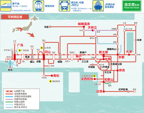 火车:山阳新干线、关西&广岛地区铁路周游券