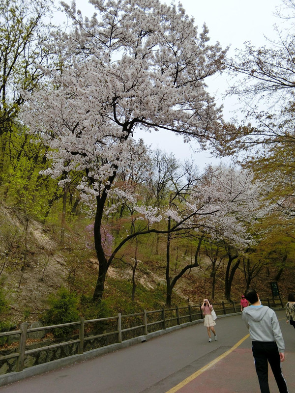 最后一站N首尔塔。N首尔塔也叫南山塔。N是南山Namsan的首字母。N首尔塔位于南山之巅。为了沿途盛开的樱花我们一路啊拾阶而上。樱花虽美,但是那天天气阴沉,没有阳光是樱花最好的美颜,没有了阳光,拍出来的樱花也是苍白一片。而且南山游客如织,有些中国游客更是大声喧哗,破坏了赏樱该有的静谧和浪漫。