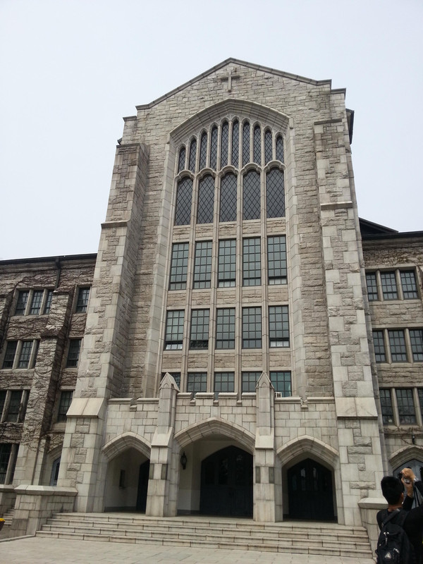 梨花大学最特别的莫过于它的下沉式教学楼,由法国知名建筑师Dominique Perrault设计,两栋建筑依山而建,中间留有一条狭长走到,感觉似乎是走在约旦的佩特拉古城里的玫瑰峡谷。