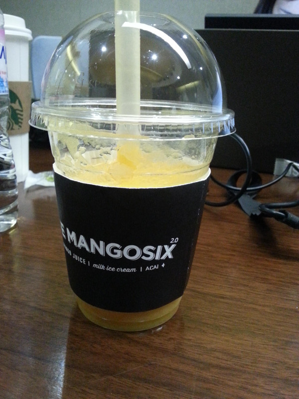 首尔出差在办公室的最后一天。手忙脚乱的完成各种工作。早上终于尝试了一下韩国本土咖啡。Angel in us Coffee,貌似属于乐天集团下。Vanillia Latte感觉实在太甜了,不是很喜欢。