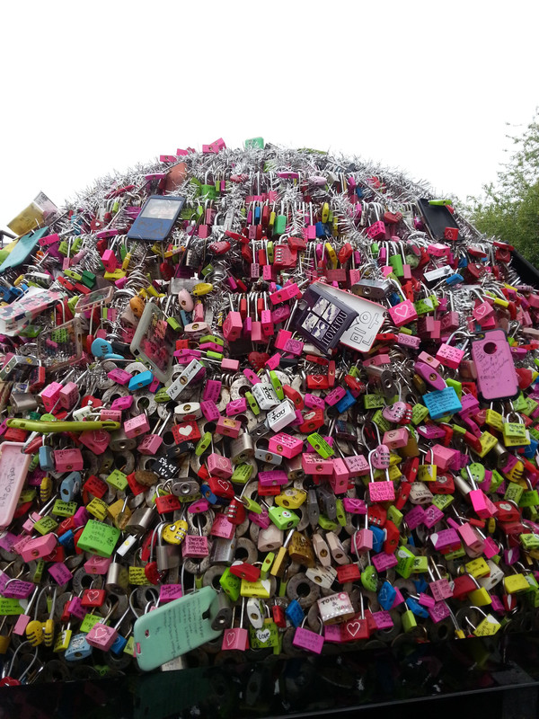 爬到南山之巅还是蛮累的。到山顶看到了同心锁墙。不过很多景点都设置了让人挂同心锁的地方,巴黎的爱情桥,黄山的同心锁,现在又是首尔塔。这世间也未必会因为多一把同心锁而多一段佳话。就如每个城市必然要有一条河一样,每个城市也必要一座高塔做地标。首尔塔和其他高塔,譬如艾菲尔铁塔东京铁塔东方明珠塔,一样就是很高,然后就是电梯速度很快。在下面拍照不过是表示到此一游。