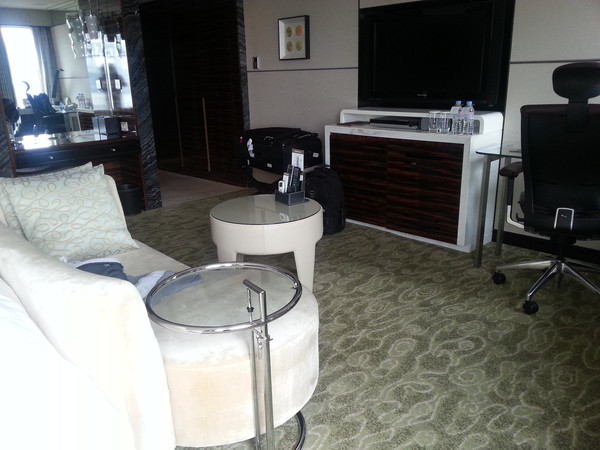 换了韩币,出机场坐上通往乐天酒店的Bus。机场巴士很干净,1600韩元,差不多100人民币。司机开车前还会鞠躬,这点和国内很不同。到了酒店,服务人员很客气,感觉和日本蛮像的。酒店房间很韩风简约风,白色家具,我很喜欢的风格。韩国人和日本人一样会利用空间,挂衣服的橱柜被设计成扁平的,倒是第一次看见。