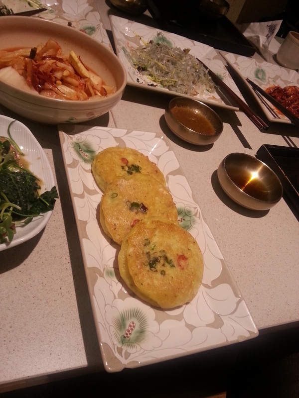 晚上又去吃了……出差就是吃。吃的是韩国的定食。