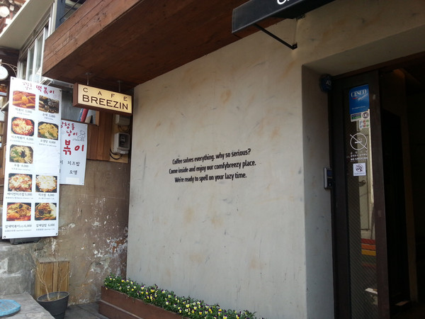 在三清洞的某个忘记名字的咖啡馆小憩,只是因为喜欢外面墙上的这段话。