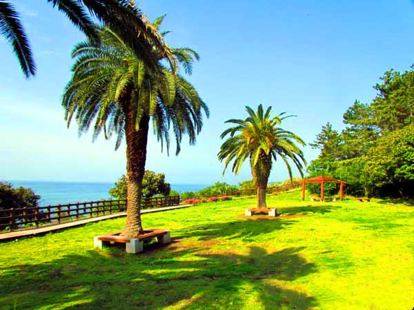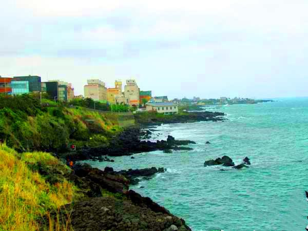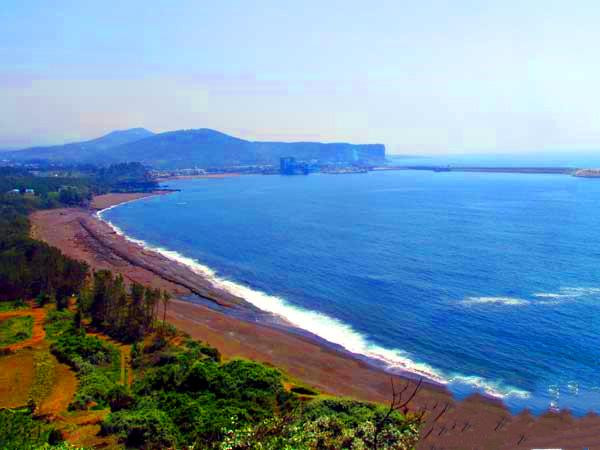 2014年4月21日,济州岛晴空万里,清晨济州岛的宁静更加显示出这里独有的魅力。只见街道上整洁干净,车人稀少。球迷们带着好心情,继续济州岛的第二天行程,上午首先来到了中文海滨浴场风景区。实际上中文海滨只是济州岛上的综合性观光园地中文旅游区的一部分,这里位于中汉拿山西南部,面积372万平方米,1971年被指定为国际旅游区。中文海滨是一处名叫长沙(Jinmosal)的沙滩,沙滩格外长,达560米,平均水深1.2米。沙滩上有黑、白、赤、灰等各种颜色的沙子,与济州岛的黑石—玄武岩形成和谐的对照。沙滩右面的悬崖上有天然的海蚀溶洞,后面围着一圈岩石。可以在此享受冲浪等海上运动。由于水流较急,除冲浪外也可进行其它的海上运动,因而十分有名。如进行冲浪时冬季的风浪条件要好于夏季。球迷们到此观赏景色秀丽的临海风光,远眺海上还能看到星星点点的浮球飘在海上,吴导说,那个浮球就是济州岛上著名的海女们在海中作业。