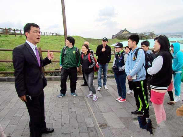 北京国安球迷团首批团员们的魅力济州岛之旅真是给力。在参观了一系列人文景观后开始观赏秀美的大自然风光美景。先是来到位于济州岛东南面的涉地岬风景区。