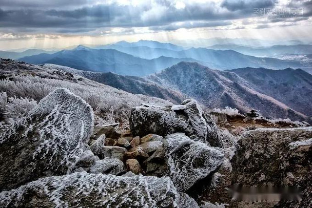 还有雪岳山,拥有朝鲜半岛东部太白山脉最高峰,海拔1708米。主峰大青峰一年有5-6个月积雪。喵妈自己去过一次,带小屁孩也去过一次。风景极佳,冬天还能看到雾凇!