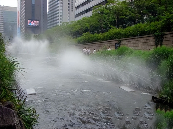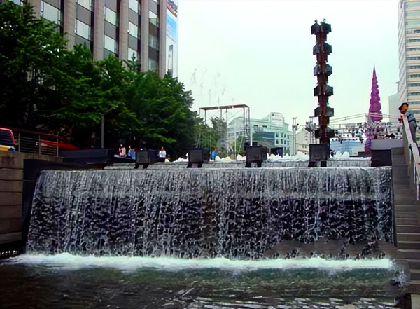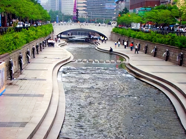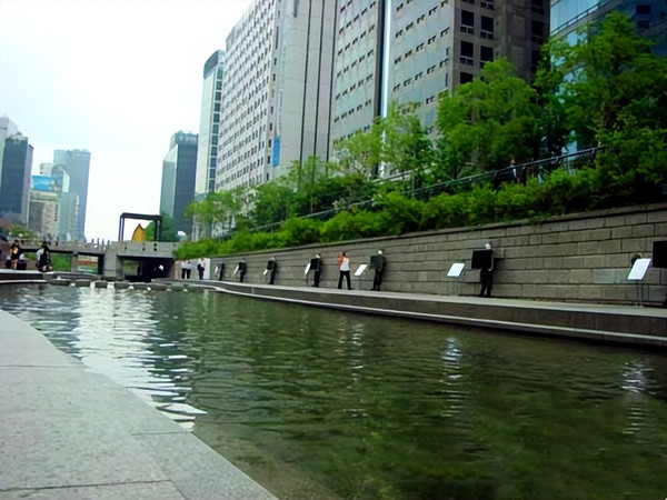 在被整体覆盖后建成柏油路,两侧商铺林立成为商业中心后消失的河流,在2003年又被从新开挖,历经数年整治,终于恢复了清溪川一个清秀怡人的面貌。
